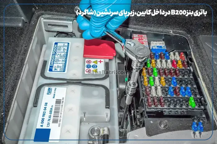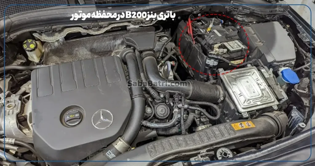 نکته: باتری مرسدس بنز B200 در مدلهای قدیمیتر زیر پای سرنشین جلو (شاگرد) نصب میشود، اما در مدلهای جدیدتر این خودرو باتری در محفظه موتور قرار دارد.