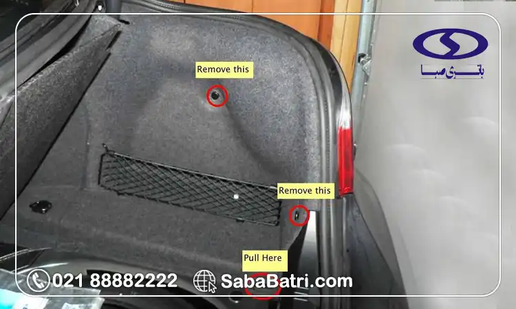 باتری بی ام و 535i در قسمت عقب خودرو، داخل صندوق، و در سمت راست ماشین قرار دارد. باتری در صندوق عقب از آسیبهایی مانند لرزش و گرمای موتور محفوظ میماند. تصویر مقابل محل قرار گرفتن باتری بی ام و 535i را نشان میدهد. با برداشتن روکش مشخص شده به باتری دستری خواهید داشت.
