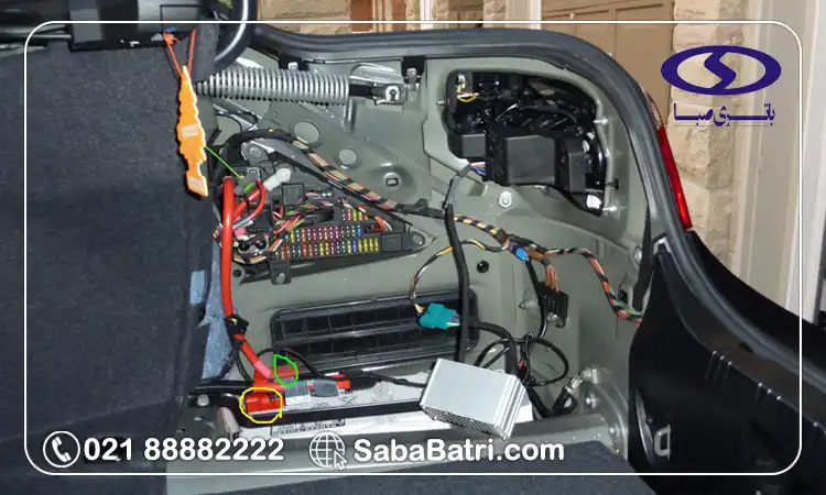 باتری بی ام و 525i در قسمت عقب خودرو، داخل صندوق عقب و در سمت راست قرار دارد. باتری در این قسمت دچار آسیبهایی مانند ضربه، لرزش و دمای شدید نمیشود. تصویر مقابل محل قرارگیری باتری بی ام و 525i را نشان میدهد.