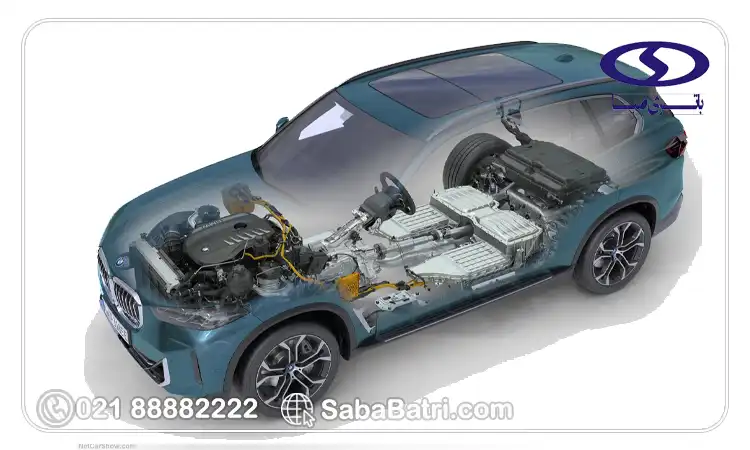 باتری بی ام و X5 در قسمت عقب خودرو و زیر کفی صندوق عقب قرار دارد. تصویر مقابل محل قرار گیری باتری بی ام و X5 را نشان میدهد. باتری در ابن قسمت از هر گونه لرزش و ضربه و همچنین گرمای موتور محفوظ میماند.