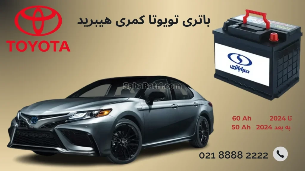 باطری فابریک تویوتا کمری هیبرید تا 2024 باتری 60 آمپر و تویوتا کمری هیبرید 2024 به بعد باتری 50 آمپر میباشد.