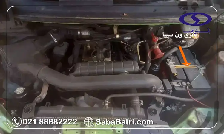 باتری ون سیبا در قسمت جلوی ماشین و داخل محفظه موتور قرار دارد. برای دسترسی به باتری کافیست کاپوت ماشین را باز کنید. در تصویر مقابل محل قرار گرفتن باتری ون سیبا را مشاهده میکنید.