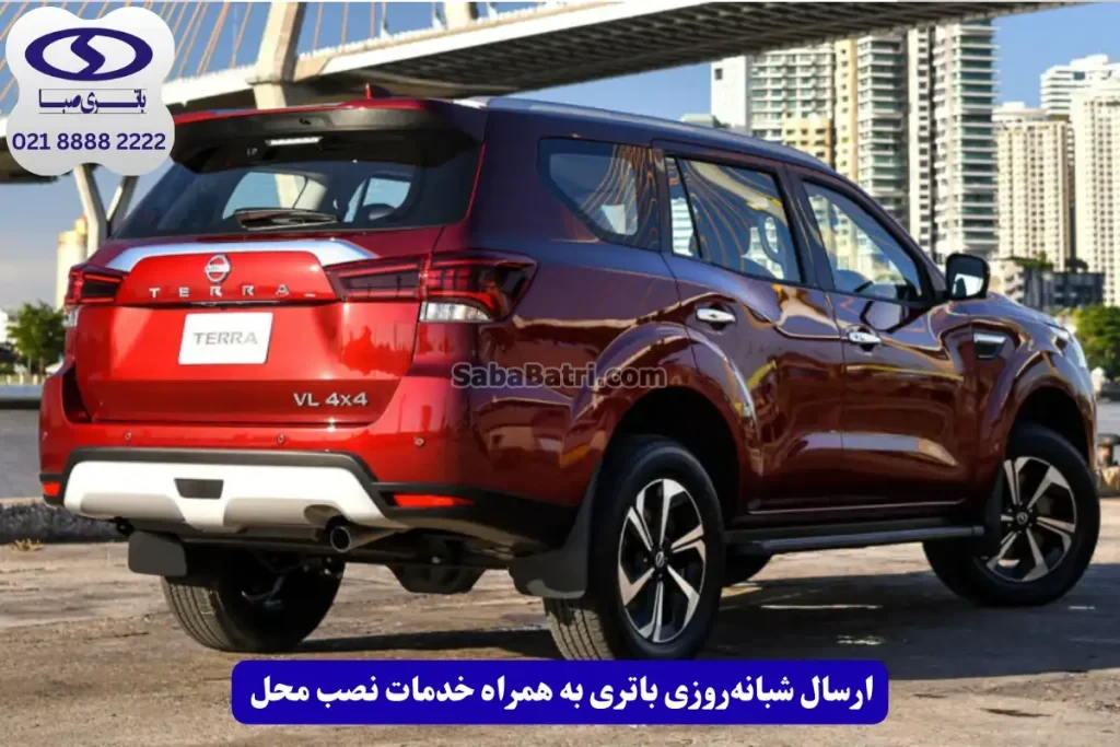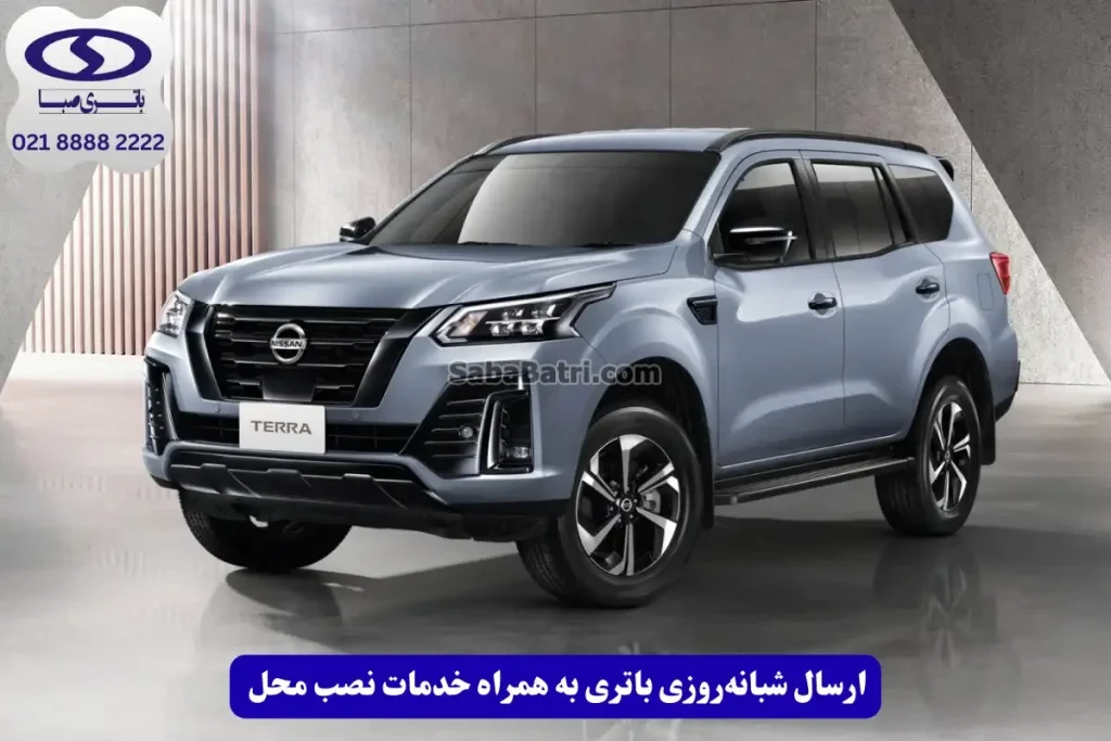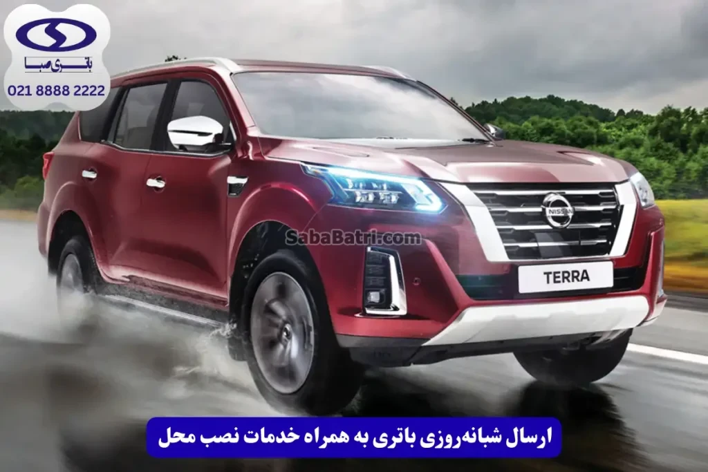 نیسان ترا (Nissan Terra) یک شاسیبلند میان اندازه با پیشرانه دیزلی و بنزینی است که در بازار ایران عمدتاً با موتور ۲.۵ لیتری بنزینی عرضه میشود. باتری اصلی فابریک این خودرو توسط شرکتهای معتبر کرهای و ژاپنی تأمین میشود و به دلیل مصرف برق نسبتاً بالای سیستمهای الکتریکی (استارت سنگین، سیستم صوتی، چراغهای LED و ECU پیشرفته)، از باتریهایی با ظرفیت بالا و کیفیت ساخت عالی استفاده میکند.